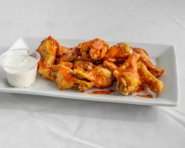 1 lb wings deep fried and lightly tossed in hot sauce. Ranch on side. Red cabbage, pineapple, celery, white cabbage salad